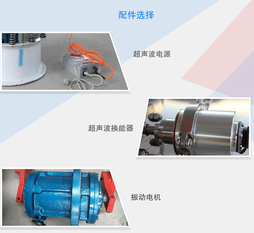 超聲波振動(dòng)篩主要配件有:超聲波電源、超聲波換能器、振動(dòng)電機(jī)。選擇不同質(zhì)量或種類的配件對(duì)于超聲波振動(dòng)篩使用效果都有著十分重要的作用。舉例來說,大漢超聲波振動(dòng)篩的電機(jī)可以選擇普通或者是防爆性能的電機(jī),防爆電機(jī)一般用于粉塵量大的場(chǎng)合,可以避免發(fā)生粉塵爆炸,其價(jià)格會(huì)比普通電機(jī)貴,一般篩分環(huán)境選擇旋振普通電機(jī)即可。